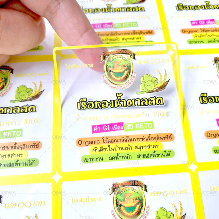 - แก้ปัญหาเรื่องสติ๊กเกอร์ใส ติดแล้วสีจม มองไม่เห็น - สามารถกันน้ำได้ 100% เข้าฟรีซได้ - นิยมใช้ติดสินค้าที่ต้องการโชว์พื้นผิว - กาวเหนียว คงทน ไม่หลุด กันแดด ได้ดี
